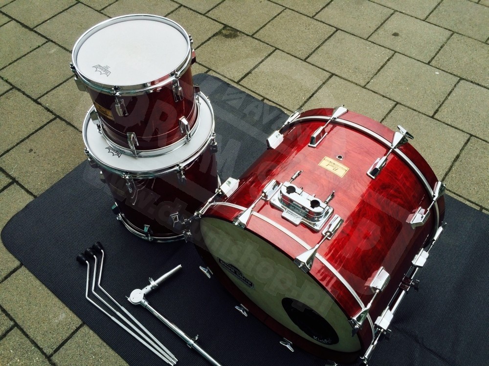 Sklejka wewnątrz lakierowana i w idealnym stanie. Wykończenie "Wine Red" na zewnątrz jest chyba jednym z najładniejszych kolorów ever. Bębny wykonane z największą precyzją w Japonii.