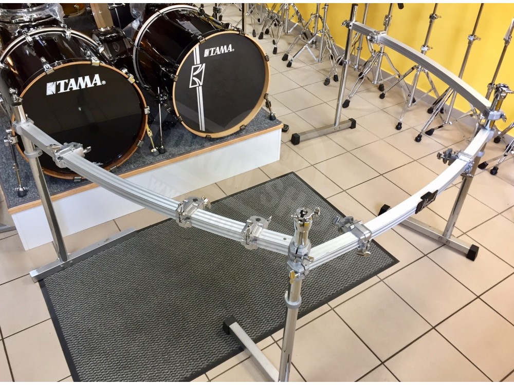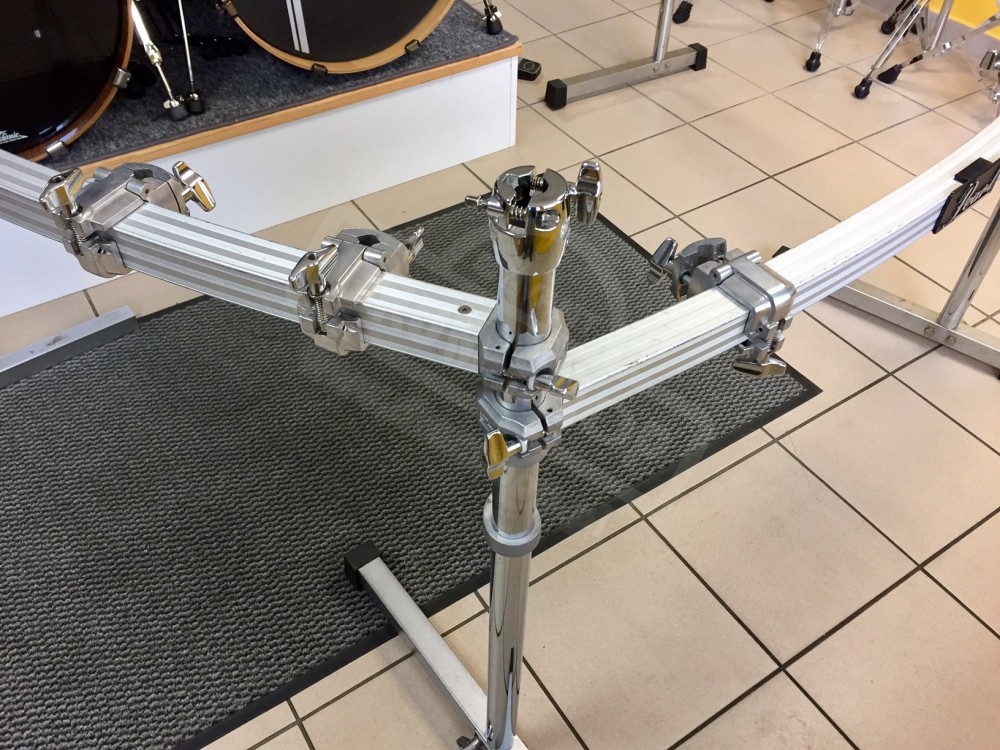 Z powodzeniem można powiesić na niej duży zestaw bębnów, tyleż ramion pod talerze i mnóstwo holderów.