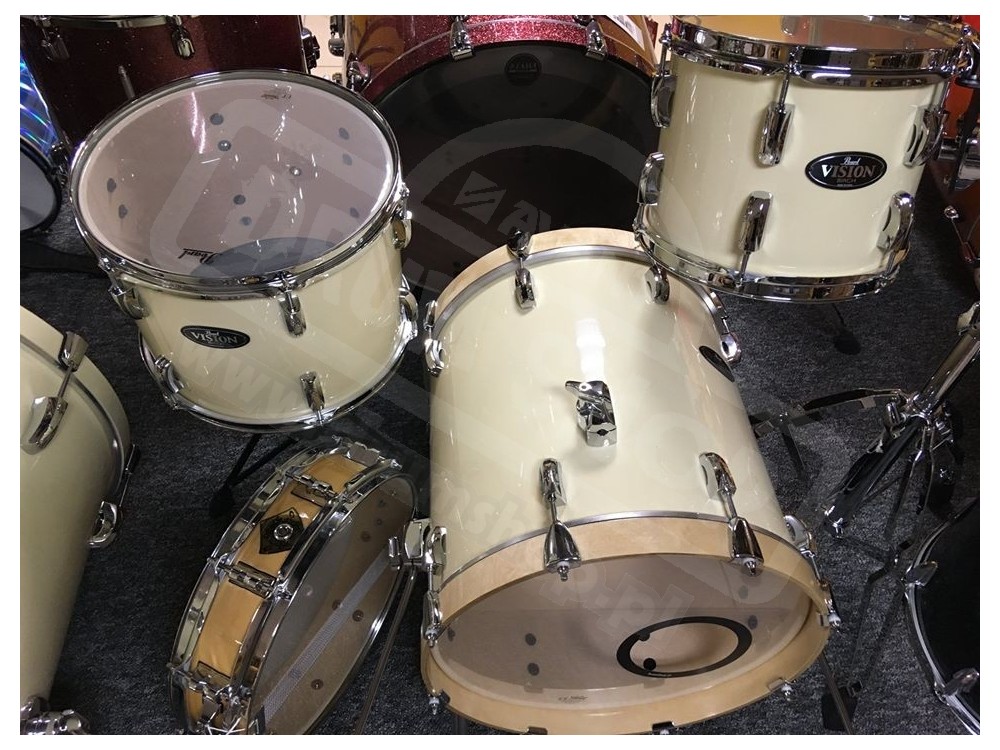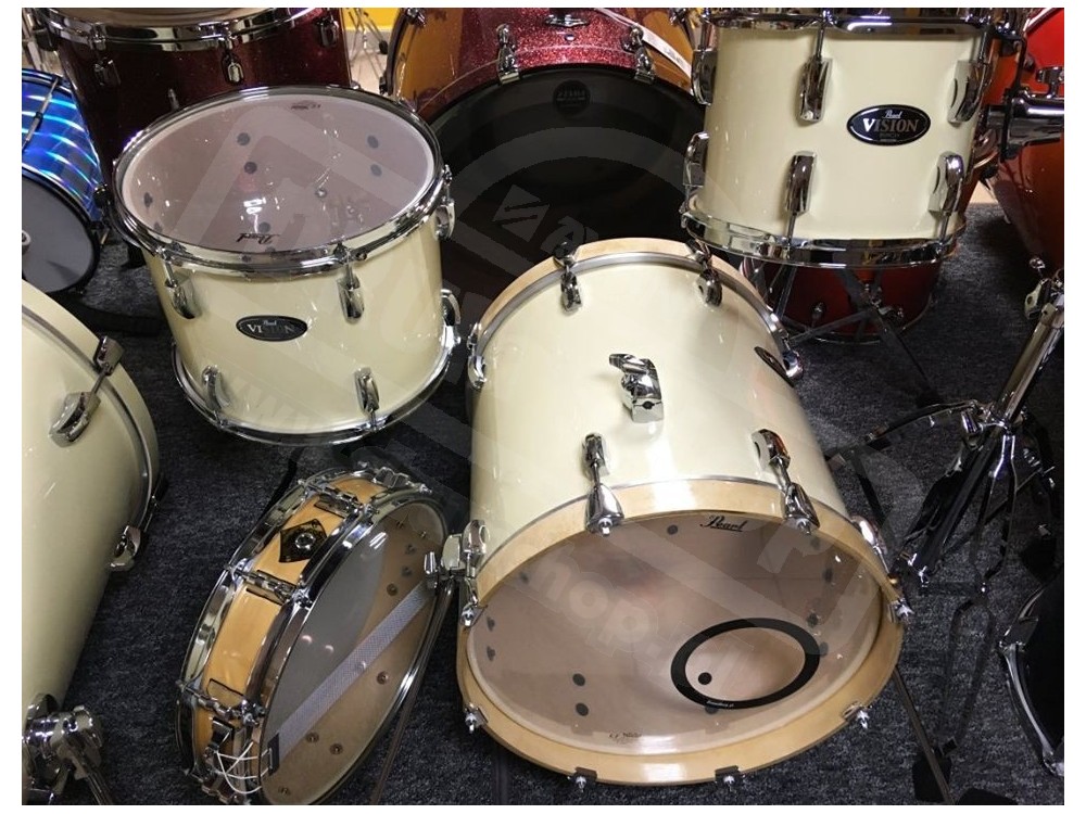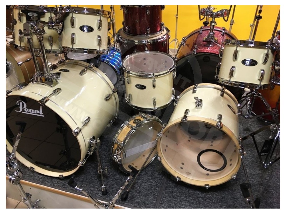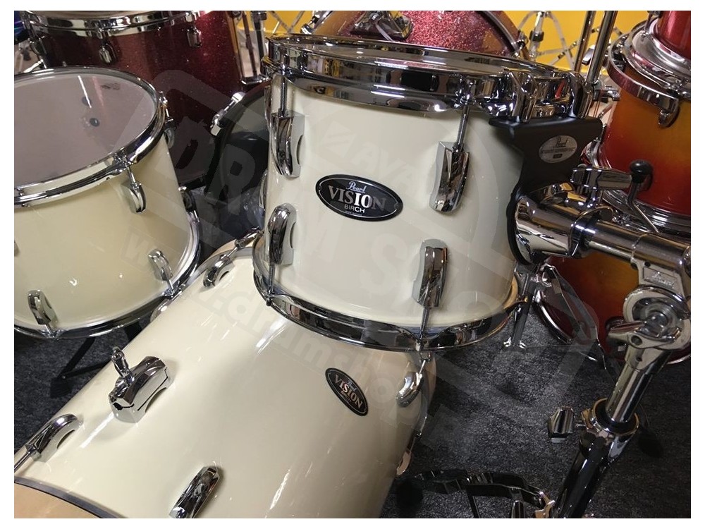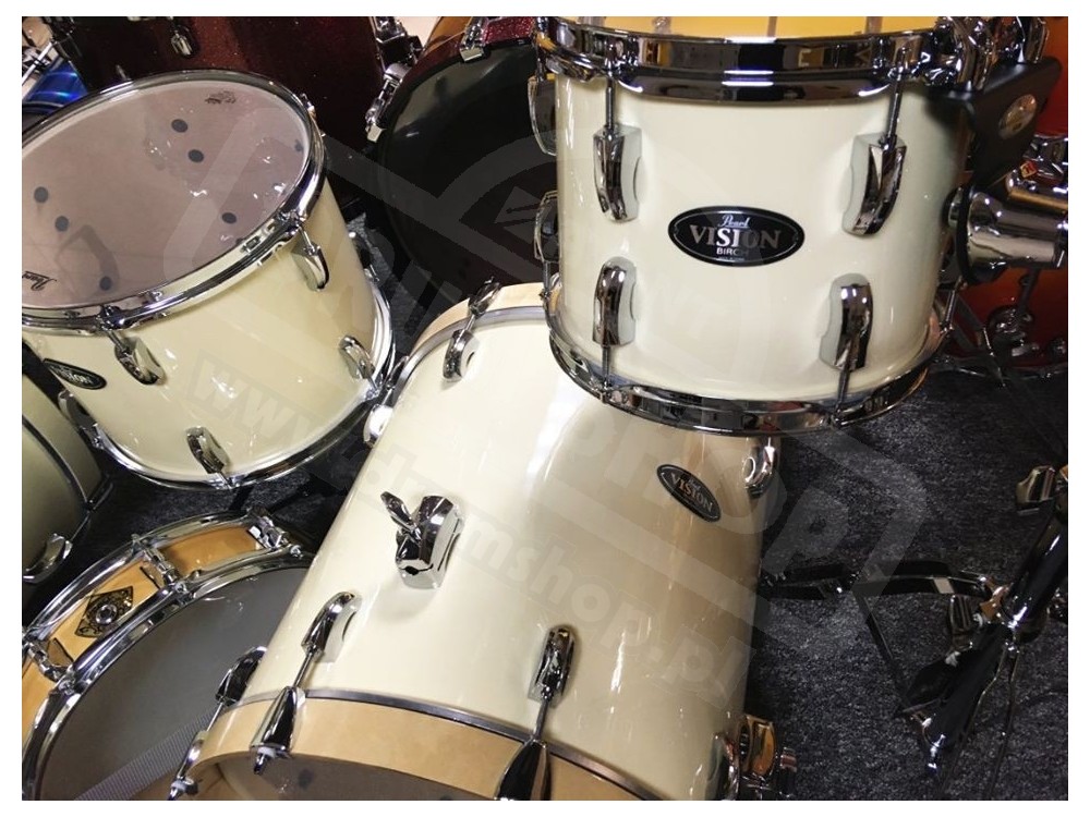 Z nowego, rozkompletowanego zestawu Pearl VB ( Vision Birch) postanowiliśmy zgrabnie wykorzystać pozostałe bębny aby stworzyć taki oto kompaktowy Vision Birch Jungle set w kolorze Ivory (kość słoniowa)